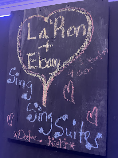 Read moreThis was the perfect karaoke spot for me and my boyfriend to celebrate our anniversary. We were running a little late but our host was gracious and flexible. We were greeted before we even reached the front door and when we walked in, it was such a warm surprise to see our names in a heart on the chalkboard recognizing our anniversary! She even took pictures of us and handed me a chocolate rose! It was way more than I was expecting. The room was perfect. We were provided snacks and water and champagne flutes for our own beverages. There were phone holder stands to hold your phone and record. I recorded our whole session. The song selection was overwhelming in a good way. Such a vast selection of genres and categories. We went from the B-52’s to Whitney Houston to Pat Benetar to Megan thee Stallion to Shania Twain to Will Smith and more. The karaoke system was super easy to navigate. We spent 2 hours there uninterrupted and it flew right on by. We had so much fun! We rewatch our video over and over again to relive the night. I can’t wait to go back. I HIGHLY recommend Sing Sing Suites. It’s affordable, the service is perfect, and the host was so sweet and nice and accommodating. Go to Sing...
