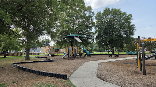 The nearby bathrooms are open seasonally. Think after November locked. The East Ridge City Hall is behind playground. There is a pretty Christmas tree, bathrooms and a library inside. Nice option to warm up cold...