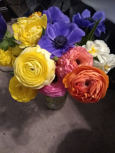 I bought an anemones bouquet this past Sunday, February 27, 2022, and I had to post new pictures, because they're all fully opened. It's a burst of color, which is so pretty, and it's my favorite bouquet so far! When I bought the bouquet the flowers were closed, which was great, because the flowers last longer. You also get to watch them change.