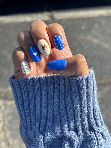 Oct 2025: Love getting my nails done here! Tracy is the best she always takes a great effort in prepping the nails and making sure they're all perfect. i got my previous gel polish drilled off, got an acrylic on one of my thumbs that had broken, and then got gel polish on my natural nails and 4 designs on each hand. this was total $45 + $10 tip! very well priced and took less than an hour. these are UC Berkeley themed (blue & gold are their school colors + their mascot is a bear) and Tracy always helps me refine my design choices. I called the night before to set an appointment for the next day.