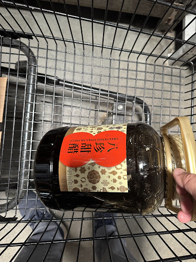 Today, we visited to purchase a large jar of sweet black vinegar to prepare vinegar ginger pig feet in anticipation of my daughter's baby. We found a 2-gallon package of vinegar, perfect for our needs. Rivera carries almost everything an Asian restaurant might require: bulk-sized sauces, cases of frozen buns, wontons, dumplings, meat products, and more. The large fridge by the entrance is stocked with fresh produce, or at least it appears fresh.