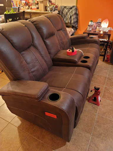 Read moreI feel obligated to leave a review based on my experience. Do not buy the piece of furniture posted. It is made of cheap balsa wood that is multiple layers glued together. I have put it up on jacks and fixed it twice, but apparently there was two breaks the second time around so it is still broken. It has broken from regular use, we had it for 19 months (first repair was five months after buying it and second was 19 months in) and it cost ~750 when we bought it while on sale in 2021. They try to sell you on furniture insurance, but furniture should be strong enough not to need it. So to those who want to shop here or any furniture store: 1) tell them to show you what kind of wood is under the upholstery. If you can't confirm it is solid wood or they won't show you, don't spend a lot on that piece of furniture (especially if it has moving parts). 2) don't buy furniture insurance, buy good furniture (I did not buy insurance because despite the headaches I am able to fix them myself). If you do buy insurance, make sure that it is in writing that if the furniture cannot be repaired then it will be replaced at no cost. See if there is a deductible. And do the math. If you pay $50/month, that's $600 a year. You can just buy another piece of furniture at that point. 3) the other solid pieces of furniture I bought here were very good and worth the money. But when it comes to recliners, or anything with lots of moving parts, make sure it is solid wood (the extra cost is worth it) and if they don't have anything with solid wood then be prepared to either buy furniture insurance (if the previous conditions are met) or go somewhere else for reclining furniture. Like I said, everything else was great. For giggles I added a picture with it on jacks from the first time I fixed it...