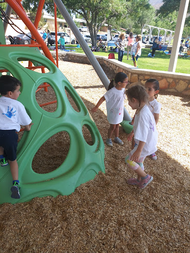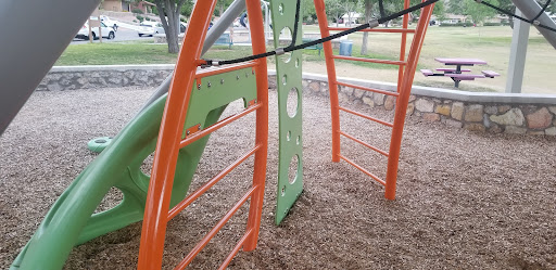 Basketball court, playground, tennis courts along with wide spaces to gather under trees. Close walking trail about 10-15 minute walk from the park (Thousand Steps Trailhead). Great view of parts of Franklin Mts and homes...