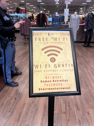 Read moreIf I could leave zero stars I would. I pretty much go to all the Star Western Wears that are in El Paso, TX. So today I came to the one here in Sunland park because I was looking for a hat. Usually when you walk into a Star Western Wear the staff will approach you immediately & offer to help, but today the staff was very busy and that includes the woman who was the security guard. 20 minutes I waited for help and the staff were just laughing & talking. So I went & told them I have been walking around looking at hats for 20 minutes & none of you have offered to come help me, but yet you guys are laughing & having a good time. I told them they are very unprofessional and shame on you. Hopefully Star Western Wear can go through the cameras & see what they are paying their staff to do and it’s obviously not work. This incident happened around 2:20 pm today on...