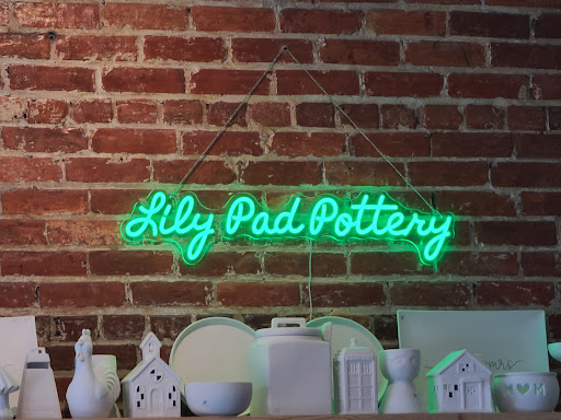 This was my first visit at Lily Pad Pottery, & we had a wonderful time! The owner & the employee that was there at that time were incredibly friendly, outgoing, helpful, & enthusiastic. I was surprised at the amount of space they actually had as it appears to be very small from the storefront view. The decor was nothing fancy nor elaborate, but tastefully done, even providing a calm, peaceful environment...lol, at least while we were there. It was getting busier & louder when we left. They have a large aquarium against one wall that is home to several frogs that stirs curiosity & excitement for all who enter, especially children. They apparently have music playing on a typical day, but at the time of our visit they said the downtown area was having wifi issues. They had an assortment of ornaments, figurines, holiday decor, and various other items to choose from & add your own special touches to; prices are marked on the unfinished pottery items. They also have color samples displayed so you know what the colors will look like on your finished piece. Each color has a number. You find the matching bottle of paint & take it to your table. Everything is provided for you; all you need is imagination to create something special & uniquely your own. And when you finish, you just leave a completed form with your project at the table. They pick it up, put all the paints back on the shelves, & clean up everything. If you don't finish your piece that day, they keep it for you until you come back to finish it. I had selected a very detailed holiday cookie jar, & after 4 hours, still hadn't even gotten it halfway finished. But they don't rush you nor limit your time there, even if you're there for an entire day. They apply the final top coat of clear glaze before firing the pottery in the kiln, & call you when it's ready to be picked up. This is a good place to satisfy your creative urges & have a relaxing experience at the same place, especially if you enjoy handmade type items for yourself & gift giving. Children are welcome, & it's a good way to stimulate their creativity as well, but they cannot be left unsupervised. They do have a large restroom with a changing table as well. This would also be a fun group activity. Overall, it was a very pleasant experience, & I look forward to going back again to finish my special...