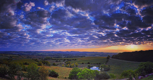 Great place to watch the Sunrise, but really breathtaking and serene any time of day. There will be some road noise from the highway behind you, however, in between the rise and fall of shifting engines, you can hear the plaintive moo'ing of cows, the screeching of hawks hunting in the distance, and all the other sights and sounds you'd expect from this gorgeous rolling farmland. It's worth noting there is also a tree-lined rest stop in the center of the loop that sends you back to the highway, but the overlook is best viewed and accessed by parking on the straightaway immediately after exiting. There are bathroom facilities, as well as dog-walking and...