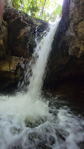 This is a nice swimming holeππ with more jumping and wading than swimming and fairly easy to get to from the limited parking off the road. It seems to be a popular place with people coming and going. The walk from the parking to the falls has a section that is "nature's stairs" which is tree roots (see photo), then a section of man made stairs that are about knee-high as you step down. No hand rails, and it's always damp. Water is cold but enjoyable. No restrooms. π«π½π«πΎ No snack bar either, so bring your own brownies, pop tarts, and coffee β.