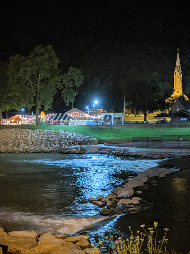 We had our summertime pick a city Art group in for picnic and some painting..beautiful day for river painting..easy to get too..a lot of seating along the river side also handicap accessible. People fishing..had fun would bring my group back. Want to say that city workers saw us at the picnic tables under the music shelter and we're mowing but left for a hour when it was time for them to mow around close to where we were, saw our group and they were very respectful not to..gave us time to eat and visit. Thank...