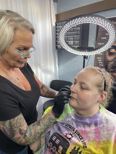 Read moreDidn't realize this was a mother-daughter business, loved it. When you go up the stairs the door to the left is the daughter's tattoo studio and to the right is the mother's studio. I had accidentally walked into the tattooing half lol. Dawn was super nice and inviting. She answered all my questions with her wealth of knowledge. Her assortment of jewelry options was phenomenal! I got even more excited to get my septum pierced after I saw the one for me. I questioned Dawn about getting that one & she kindly offered to take it out & put it up to my nose to see if it'd be a fit with my medusa and low and behold it was perfect! The piercing itself was done quickly. I was embarrassed from tearing up from the pain, but Dawn just wiped away my tears and blood away. The pain honestly felt like I had all my nose hairs waxed. I bled quite a bit, but that was short lived. She gave me an aftercare sheet & let me know that making my own salt water & spraying it 2x a day was the way to go. She also had some saline for purchase. I really appreciated that detail since I was told differently at another shop & I didn't do my own research. In the end, I couldn't be happier with...