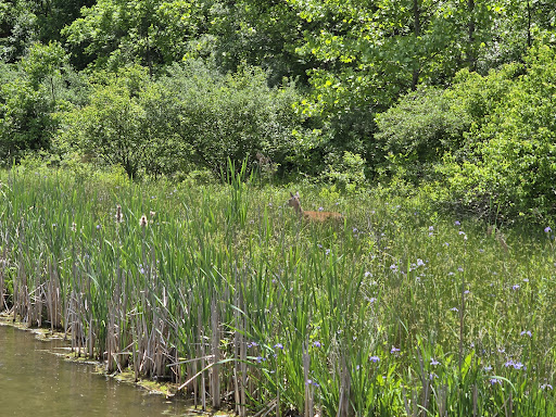 The big lake area has a small gazeebo that jets out into the lake. Nice quiet place for morning meditation or yoga... as long as you don't mind ducks quacking and bull frogs croaking. Also spotted a family of deer enjoying the area too.