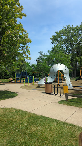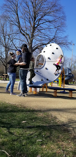 Very cute playground with a little kid section, a giant climbing rope area, a climbing wall wiggle,some balance features, ride on bouncy riders, a giant saucer swing and regular swings. Park is right by running water potties and between two baseball fields. There is a picnic table and a chess table and...