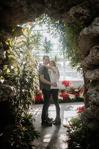 The conservatory offers a warm, inviting environment—a welcome escape from the Midwest winter chill. Surrounded by vibrant greenery and natural light filtering through the glass, the photos came out stunningly lush and romantic. The intimate setting and botanical backdrop added an organic, timeless quality to every shot, making it a perfect spot for couples seeking a unique and cozy vibe for their engagement pictures.