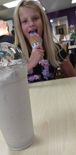 I love supporting local businesses. This little shop serves 16 flavors of Blue Bunny ice cream in bowls and cones. Toppings I saw available are Raspberry jelly, caramel, chocolate sauce, whipped cream, and hot fudge. GET THE FUDGE. It was nearly as good as the hot fudge I had in San Francisco at Ghirardelli Square. While the interior is sparse, it's got solid seating. I expect I will come...