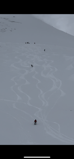 To finish the day, we did the exact same extremely tracked out run 4 times in a row. Same drop off and pick up. I assume this is because it was the only place we could get some non-ice turns.