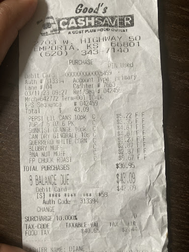 Ā Ā Ā Read moreGreat prices on meat products! but I donāt agree with the surcharges of 10 % at the end of the total bill, this is the reason I stopped going for shopping there. Last time I went, I spent $36.95 on food products only I was charge $3.70 on this nonsense surcharge and $2.44 on food tax making a total of $43.09 on 8 items. THIS IS WORST THAN PAYING AN ANUAL MEMBERSHIP ON SAMS CLUB OR OTHER GROCERY STORE. PAY ATTENTION TO THE CHARGES ON YOUR RECEIPT š§¾ AND LOOK FOR THE...