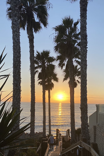 We stumbled upon this beauty by accident. We were driving from San Diego to WeHo and wanted to watch the sunset. We were trying to find a public access beach but ended up on a dead end street that led us here. We were able to jump out and find the steps and watch the last few secs of the sun setting. I was truly in awe at the captivating beauty of this beach. We had no idea what we had found. The steps that lead to the beach are right on the cliffside and lead right down to the pristine sandy beach. There was quite a few others admiring the scenery. I would definitely check this place out. Beware however, steps are the only way to access this area and there is quite a few flights and they can be steep to some. If stairs arent your thing, this isn't the place for you. There is a parking lot but it doesnt fit many cars at all. The rest of the area is residential so I'm not sure where you would park other wise. Parking is free and so is access to the beach. Go ahead...go take a look..let's...