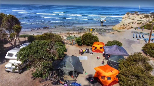Read moreThree stars for the views which are fabulous and the nice clean bathrooms and showers (note the wash sinks are on the building end outside). And, the beach when the tide is out is lovely. Note there are signs that warn not to go near the cliffs as they collapse and can kill you. No stars for the tall tall stairs everywhere to get to the beach except the far south end of the campground. But the catch here is the trains at this end are at grade, are very close and run all night. Yes, they do wake me up over and over. No stars for the fact that the campsite provides public access to the beach at several locations. This means a high theft rate for bikes, generators and anything left unattended that is valuable. No stars for the beach which is gone at high tide, has lots of cobble that is hard to walk in and trips you up when in the surf and bruises up your feet. Did I mention that when you fall you land on random cobble hidden by the surf? No stars for the rock shelf that is between the sand and surf. It is riddled with holes, irregular erosion troughs, cobble, and can be covered with slippery moss. Booties or water shoes are highly recommended. Last time my husband and I tried to boogie board here my husband twisted his ankle and both of us had scrapes and bruises after we caught the first wave. The surf was not even very good but we had enough education that after one wave, we gave up and drove to a different beach. Note I am a rough and tumble gal. My advice here is to skip this beach if your thing is boogie boarding or swimming unless you are lucky and find a sandbar. The surfers are further out so only have to go through this zone going out and coming in. Surfing is very popular here. Why do we come here every year? Our surfer friends join us and the...