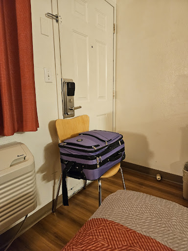 Read moreIn terms of looks this place is not very pleasing to the eye and isn't very well kept. The toilets seem to have issues, the one in the room we stayed in you have to hold down on the handle for over a minute in order to get it to flush, and from the windows I saw that many of them were dirty and clogged. In terms of insects there are less than I'd expect based on the look of the place however that doesn't mean I haven't had my fair share of spider killing. The refrigerator and freezer are both of adequate size and the TV is large. Very close to shopping and Starbucks and the room is of adequate size. Pet friendly ish, however they complain about accidents your dog may have as though you just ripped up their mattress and they don't like you walking the dogs on the property. If the manager (also the owner) doesn't like you he will make up policies to get you out and tends to lie about alot, not to mention sexually harasses female guests he finds to be pretty (continuous flirting, mentioning how he has a nice room she can stay in with him if they aren't satisfied with the one they're with ect). The houskeepers pretend to not know any english when you have heard them speak english to eachother before and don't like to come in and clean the rooms. There are millions of bugs everywhere, the bathtubs look like someone decided to jump into a mud pit then rinse in the tub because of how rarely the houskeepers clean them (not to mention when they do try to clean it they have no idea what they're doing). The rooms are eyesores and the beds are very uncomfortable. Many of the guests are either mentally disturbed or drug addicts. The only thing this has going for it is that there's a roof and you can store food. I do not suggest this to anyone...