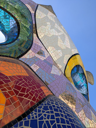 I got taken here as a surprise on my birthday, and it was made even better because I had a dream before about snakes and got scared. And then a couple days later on a hike in Balboa Park, I saw a snake and I got scared, and I kept wondering why I was having all these things with snakes Next thing I know Friend called for a surprise on my birthday to take me to a place I would really love because I’m an artist. And we get there and it’s the most beautiful amazing under the trees sculpture garden of incredible mosaics of giant statues that sparkle and it’s surrounded by 20 or 30 feet brilliant mosaic snakes. And I just laughed and laughed and laughed because it was all about the creativity in this amazing place. There’s more to the dream and there’s more to the story, but I had the best day ever. The energy is so playful and the kids are around going crazy and there’s so many angles and beautiful textures glimmering in the sunlight in this incredible creation made by Nikki St Phalle. And it was funny because I was reading about what she wrote and she said she wondered why she made so many snakes and she said it was because she was afraid of them. And she wanted to get over the fear. I can’t recommend this enough as a day activity bring your lunch. It’s so beautiful and look closely, the texture and the patterns and the layout.of the Sculptures with peekaboo holes from outside the circle, looking in — we stayed three or four hours, which is probably longer than most people stay and I never got bored of it. It’s...