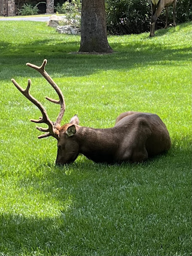 My wife and I stayed six days at Aspen Winds in a 1-bedroom spa suite with a patio that faces that river and a beautiful view of the mountains (and the mountain that centered our patio that we came to call “Mount Lumpy”). It was an absolutely amazing experience. In addition to the amazing scenery, we saw an elk standing only several yards away from our patio, as well as rabbits, chipmunks, squirrels, and magpies.