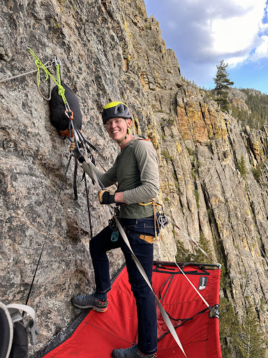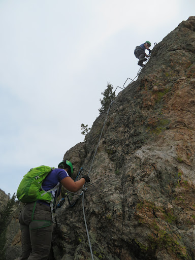 We went 600 feet up the Deville Rock to 9,000 foot Cathedral peak in about 1 hour 18 minutes--it was over way too soon. Story was kind enough to take lots of pictures for us, with the mountains of RMNP behind.