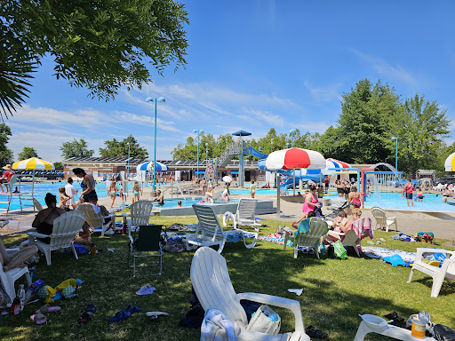A perfect public summer time outdoor pool! Seven different sections! Multiple diving boards, super high concrete diving pad, a fun drop-off slide, a relaxing twisty slide that you can slide with your babe in your lap! And the kid pool with fun water features spraying the air and some are controllable with steering wheels! Another small pool area is just for toddlers. They can walk about and fall and not get their face dunked. Perfect!