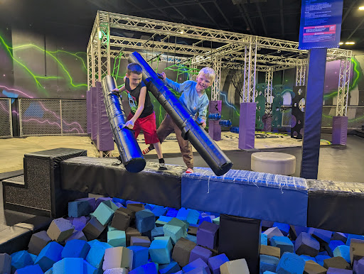 Read moreThe space is super cool, and the murals are well done. Unfortunately even during the summer they have 4 different schedules throughout the week which makes it very easy to confuse times and have to spend a couple hours waiting in the parking lot when you show up at 10am on a Wednesday (they open at noon). Be prepared to be swarmed by children and parents alike who have no manners, nor an interest doing things the way they were intended 😉 They do birthday parties and night jumps with blacklights and fog machines, which is pretty cool, but I've not had that opportunity yet. Their TVs only show ESPN with no subtitles or volume for the delinquent daddies who don't want to watch or play with their kids 🤔 . Maybe some ninja warrior would be a good option since it needs no words and isn't just old guys yelling at tvs and each other 😆 They have massage chairs available for an extra fee, but I've not tried them or seen anyone else use them. They also use what they "think" are old videos when jump shoes were allowed, to demonstrate techniques that would be much easier with shoes, but they "don't think they are allowed anymore," which isn't really a clear yes or no. Lockers are offered free of charge, so your items are nice and safe. If you are an adult, make sure to crush some kids at Dodge Ball, they love teaming up against you, and...
