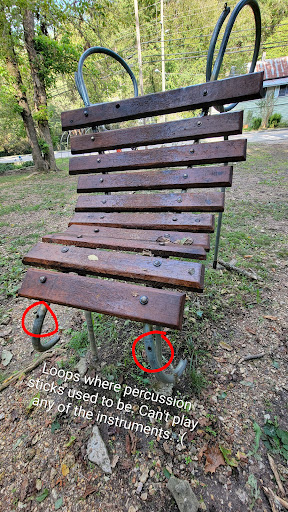 Honestly this place was sort of a letdown. I think it was probably awesome when it was maintained or when the musical art instruments were first put in. But we just went and the only thing you can actually play are some of the wind chimes (the ones that aren't missing or broken, that is). ALL of the other instruments seem to require something to hit them with and there are no drum sticks there anymore. There are hooks where you can tell the percussion sticks used to be, but they're gone. In other words, not really anything to do here except look at the sculptures? Kind of a disappointment for the kids I brought because this is such a cool concept and it looks like the older pictures people posted, the ones with all the colorful art on the trees, are old photos because none of that stuff was even there when we just went. It's too bad all the money Eureka Springs receives as a tourist town that they wouldn't simply maintain this music park. (Or maybe it's not a public park? Well, whoever owns it then it's too bad it's not maintained!)