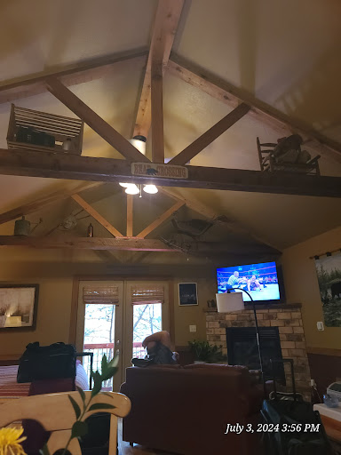 Very clean, very welcoming, very comfortable and well appointed...detailed very nicely. Full kitchen and grill made it easy for meals. Washer and dryer combo was nicely concealed and very clean. Everything advertised for this cabin was there and functional. Double shower was a great added feature. Jacuzzi was awesome experience. Fireplace was comforting and would go off and on to your comfort. The quiet and peaceful change to a very fast paced world is so welcoming. Nature all around, very little road noise. Balcony great for peaceful morning coffee and time with our God. Can really feel the full effect of God's beauty right before your eyes. Very private and with other cabins close by you are not in the line of sight when enjoying your quiet time. Very easy set up on line and all right when you arrive. Most all utensils and plates, bowls and casserole dishes if needed. Toaster, coffee pot and coffee grinder along with coffee beans and condiments. Glassware also. Lots of things to do and the Rocket tour is exceptional to take and learn about the town and the houses. All in all it is an exceptional time . We came for a week and that time was time with lots of memories...