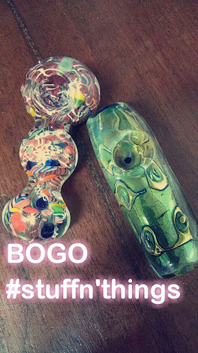 I couldn't wait to get home to write this review. I went bong shopping for my first bong, so I didn't know exactly what I was looking for. I went to 5 different places in Eureka/Arcata and NOWHERE compared to the selection Stuff N Things have-- BY FAR. Many many different kinds of shapes, colors, designs. The lady who assisted me knew exactly what she was doing. I picked one bong I liked, and she layed out 10 different yet similar bongs. She made the experience SO easy. People at other shops were a little more awkward and didn't have a lot of interest what I really liked, like she did. I found the perfect bong, a 2 footer. I fell in love, and it was half the price I was willing to spend. For no reason, she gave me a free matching bowl, free 12 oz glass cleaner, two grippers, and 10% off the bong. I couldn't say thank you enough. Oh, and I cannot begin to explain the awesome ridiculous selection and amounts of pipes that have. Case after case...hundreds. And they have everything set up in various price ranges. You'll definitely find what you're...