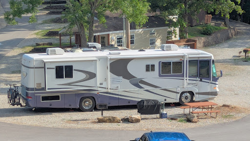 Read moreFirst off, i dont care what anyone says, this park is not big rig friendly in my personal opinion. We have a 40ft class A and getting it in and out of this park was not easy. It all started at the entry. The driveway is so steep right off the bat, that if you dont take the turn properly, youll run aground. Thankfully i drove lowered cars for over a decade so i knew to take it at an angle. The roads are narrow as can be and super windy and steep. I shouldn't touch both sides of the pavement with a 100ft hillside in my 30000lb bus while climbing the hill out of the place. There is no room for error comin or going from this park. The entire park is a hill. Most sites are moderately level despite that. Only needed 4in tall cribbing to bring the front up higher enough to be able to level out and keep all tires on the ground. We had site 64 at the very bottom of the hill. Supposed to fit a 50ft rig. No. Just no. Youll be touching the pavement on both front and back. Glad we switched from the other site we almost booked cuz wed have never made it in to, or out of, that site once we saw it in person. Way too steep of an entry. Pavement has gouges from people trying. And a steep gravel exit with washout lines from the rain. I watched an suv struggle to get up and out using it. The front desk lady made a joke of how steep and windy the entry road was. I didn't find it very funny considering the turns were so tight i didnt fit in a single lane while coming up. Didnt help the trees were low enough to touch my roof in a few places as well. And the left hand turn at the top of the driveway when leaving.... Way too tight for a 40+ ft bus. I had to make a 3 point turn to make it out. Overall, expensive, not worth the hassle in and out. Would not stay again unless renting a cabin and driving a normal passenger vehicle. This place is more suited for those wanting a cabin and not traveling in a large rig...