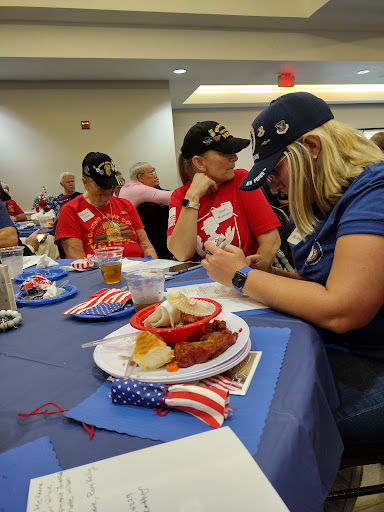 They had a little gathering there that I was invited to. It was for veterans which I am. All the place was nicely decorated and they had flag shaped napkins. They have several speakers pictures wonderful and then Kathryn and Charlotte the two women I met from Ashley's cottage. The president of the club came to greet us. And she thanked us for our service she was happy that there were some women veterans there. They had mashed potatoes and green beans and carrots and a wonderful meatloaf luncheon. It was nice to just be honored and served and thanks for our service. I was a little uncomfortable at first cuz I'm not used to going to huge gatherings even though I am a veteran I don't usually go to the gatherings. Thank you for making me feel so welcome even though I was nervous cuz I didn't know a single...