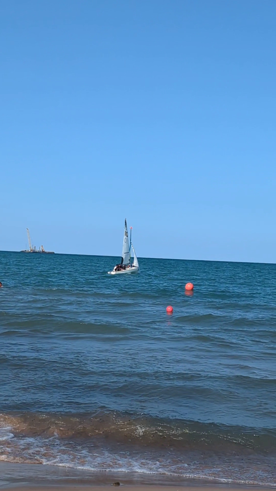 It is a wide beach but the swimming area is restricted to the area between floating buoys. So a lot of area is for wading, not swimming. The lifeguards on duty are very vigilant and call out those that are swimming beyond the specified area.