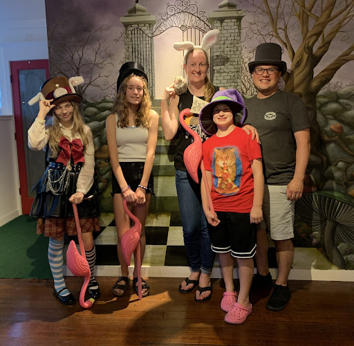 My first escape room, did with 3 friends and my hubby . It was the first for a few of us , now im addicted! I want to do more after this one but feel like i got spoiled on first my first with Alice in Wonderland and multiple rooms!!! Super fun, great props, amazing artwork (Done by his wife and daughter!) fun paper airplane hints flying in. A must go, looking forward to the Harry Potter one coming soon , we got a sneak peek after we got thru the rooms. Well done Sir, we will be back… hats off to you! See you guys soon … thanks for the great evening event….