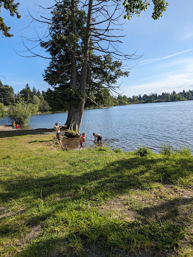 You can catch great sunsets from this spot with the lake right in front of you and trees underneath it on the other side of the lake, on the North end of the the park is a small little Beach that has a trail going through it and a small grassy field at the top and at the bottom is the the beach cutting down a two sections by a bunch of bushes and they got a good sidewalk with the quite a few docs and viewing areas with benches and stuff and Emery's restaurant is right at the end of it on the south end with a big field and there's a barbecue community area set up with the covered area with benches and tables and then it also has restrooms, small parking lot at the end there and children's playground by a mid sized green field on fhe south side. And if you were to go to the talk that is on the south side you can often see an eagle that has a nest right by the apartments up in a tree and he is beautiful, and there's also an otters game at the end of the lake just south of the of that dock which is located behind Emory's restaurant they used to be visible and playing and you could watch them all the time but all of a sudden as of about a year ago something must have happened and now they rarely show themselves but there's more than 10...