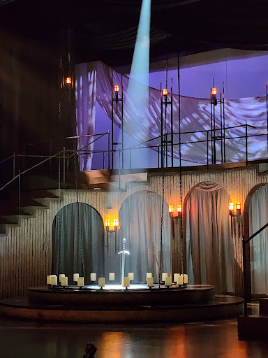 I had never been here before now.And I came to see Camelot with some friends. Who had a spare ticket and invited me. The facility was great, the staff was nice, The Sippy cups that we got for our wine at intermission were wonderful so that we didn't have to chug it down, and the show itself was GREAT! Mordred definitely stole the show in Act II. đ„° I don't know what the lyrics are called in a musical (libretto?) but I found the words quite clever. The only thing I would recommend to recommend to others to be aware of is that parking is a little bit difficult. There doesn't seem to be a dedicated parking garage for the theater unless I just couldn't find it, which is possible since it was my first time there. I will be back...