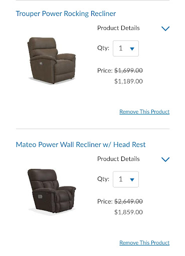 Their prices are cheaper online and when you ask why their website is cheaper they panic and stop helping you with your needs. They clearly didn't want to help me once I asked that. They also are just hunting for commission so they walk around and say hello and walk away until you begin looking at expensive stuff. They didn't have knowledge of rhe product. It's pretty much as bad as it gets. Go on their website for a better deal. The 2 recliners in my photo are nearly $1000 more in store. They had no explanation.