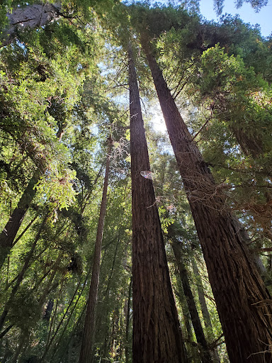 Read moreMuir Woods requires reservations now, and they were full, so we found Roys Redwoods and went there instead. Can't say it really compares. There are only a few dozen redwoods, if that, and most of the loop trail you won't see any, but it's still pretty, and peaceful. I suggest doing the loop trail the way we did: counterclockwise. That way the first third is along the road, and not terribly pretty, but at least you get past that at the beginning and the rest of your hike is better, rather than having a disappointing end to your walk. We didn't see much wildlife, but we did see a little brown critter popping its head up. Later determined, by doing a comparison of all the holes we saw along the trail, that it was most likely a vole. The other benefit this place has over Muir Woods is that it's tremendously less crowded, which is a big bonus. One star off for the third of the trail that's along the road, but overall a very pleasant experience, and recommended if you want to see redwoods...