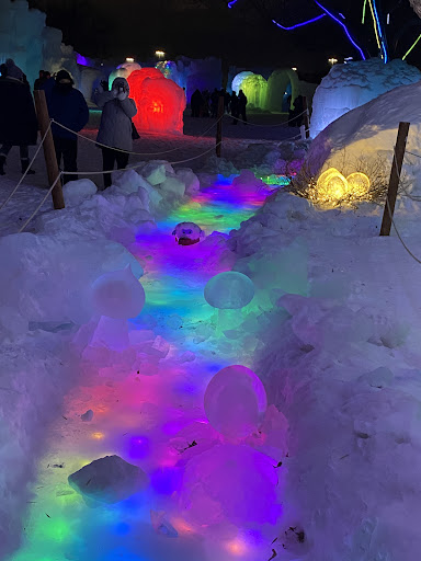 The ice castles are cool. The process is kind of explained on little signs throughout the exhibit. We did a scavenger hunt via QR code at the entrance. It was fun, even for us adults. I loved all the lights throughout but my favorite part was the slides. I will admit I got on them several times as the lines weren't long. The fire show that happens twice per hour was pretty neat. I'm glad they had food trucks there. The cheese curds held us over till dinner. You can stay as long as you want even if you buy tickets for a certain time. We walked around for almost 2 hours. Be sure to wear warm socks especially, because there's loose, powdery snow on the ground. It helped with traction but if you don't have the proper footware you'll be...