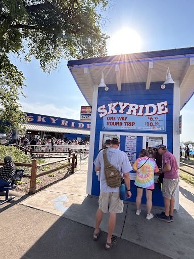 Aside from just presenting an awesome view of the entire fair, the Skyride is a strategic part of any state fair visit. While it is, indeed a better deal to do a round trip, you can hope on the Skyride right as you enter the fair, and then work your way back through the fair. It's completely enclosed, so folks that don't like heights should be fine. Just note if you are by your self, they won't do singles on Friday, Saturday, or Sunday, so be prepared to make a new friend. If you do decide to take the little ones with for a sight seeing trip, while you can't take the stroller on, there is ample parking for your stroller while...