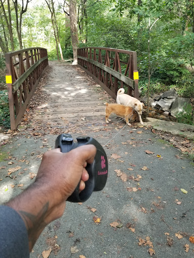 This is a beautiful little park in N. Arlington. It's basically a path a couple of blocks long that takes you over a bridge across a stream where kids sometimes play. It's dog-friendly (for walking on leash), but for most of us it's just a short pretty walk...