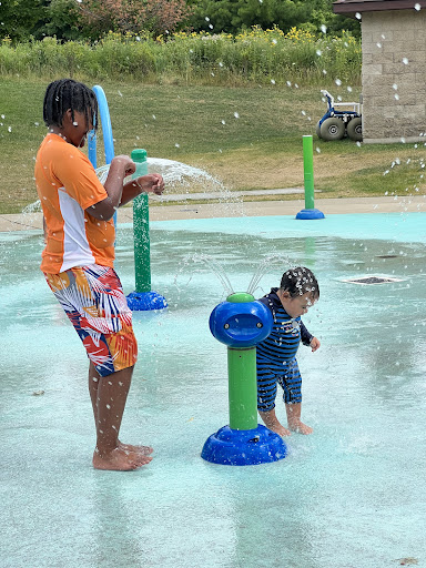 Read moreThis is one of the really nice splash pads I have been to. (Note: I live in southeastern MA, so all of my splash pad experience relates to there.) It is big enough that kids aren't packed in and running all over each other. There is a little place that sells basic snacks and drinks and some ice cream. There are table with umbrellas, a large covered area with picnic tables, many trees that offer shade, so there are a number of places to set yourself up for afternoon of watching your kids have fun. There are also restrooms as well as a playground pretty close to the splash pad. This is my ideal set up when taking my kids somewhere to play for free. Another reason why I wished I lived in MI again. MA honestly has nothing close to this unless you go to a zoo, which...
