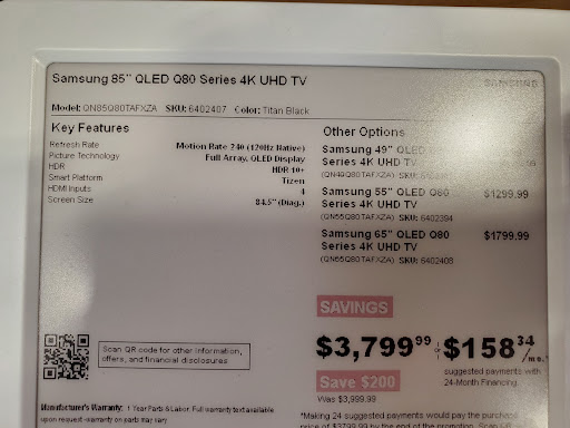 Read moreI go onto the Best Buy website to look at TVs and find the one I want to purchase being the Samsung Q8FN. I see the price on the site is $1300. I see I could order the TV and deliver it, or the closest pickup is in Farmington being 35 miles away from me. I decided to look at other retailers in the area to see if any other stores in the Salt Lake valley had this for sale. Unfortunately the stores either did not carry this model, or were also sold out. Having an Amazon account I figured I would at least see what they would offer and also the shipping time for the TV. I find the TV and to my surprise the price is $1140 and it is offering Prime two day shipping to arrive on Wednesday. I debated if I wanted to ship this TV and figure out the drop-off location or if I would check to see if Best Buy would match the price. I decided for the deal being as good as it was I would call Best Buy and see what they had to say. I called this location and was put in touch with Matt to see availability. I asked first if the store actually had this TV in stock as there was only one in stock on the site, and secondly if they would match this price. I gave the explicit detail that I would like this deal to be looked at and confirm this will be matched and there is not any hidden things that would prohibit this. I waited patiently for around 30 seconds as I assumed Matt was pulling up this deal and was told, "Yep we should be able to do that for you, no problem." I said thank you, got ready, and left for the store. When getting there around an hour later I went straight to the TV section and asked for specific model. They grabbed the TV and told me to follow them over to a register. I brought up that I had spoke to Matt for this and was told that I could have my price match for this from Amazon. I hand my phone over and the kid scrolls through it and says, "Oh, it looks like this is fulfilled by Amazon but it is sold by another distribution company so I can't honor this." I bring up the fact that I spoke with Matt about this an hour ago and specifically made sure this was eligible. He called over this manager, Stetson, who looked at this and said he'll look at what he can do. He spends 5 minutes clicking around on his computer for who knows what, then says sorry we can't honor this. I explain once again this is absurd in the fact that I was promised this and now cannot be honored. He offers for us to call Matt over and see what he says on this. I ask what good that will do and if they will match it after? He says that they cannot offer this deal but we can talk to Matt about this. I stand here and laugh thinking what good will that do that this employee is publicly scolded in front of the customer and think this will solve the issue? The logic here is that me scrutinizing this employee will somehow make me feel better about the situation? I tell him it's not worth my time waiting to have him publicly shame his employee as I still see no change in their decision. I drove 70 miles round trip and wasted over two hours of my time for a lost cause. I ordered the TV through Amazon and after this incident, further cements the thought that Best Buy is no longer the friendly customer service, customer first establishment...