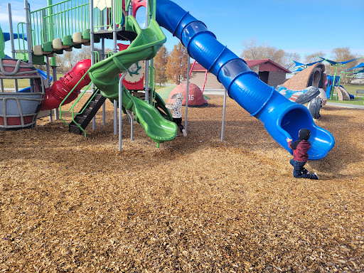 This is one of the coolest new parks around! My kids love exploring on the sports-themed playground and there are playground features like the zip-line and what my kids call the "elevator" (a platform that is easy to hold on to that lets you down slowly from the upper level) that aren't at any other playgrounds in the area. The baseball diamonds and north end of the park were still under construction during our last visit. It will be an awesome park, playground, and sports complex when it is finished! There are also pickleball courts and you can even "rent" (free with collateral) paddles and balls at the gymnasium across the...