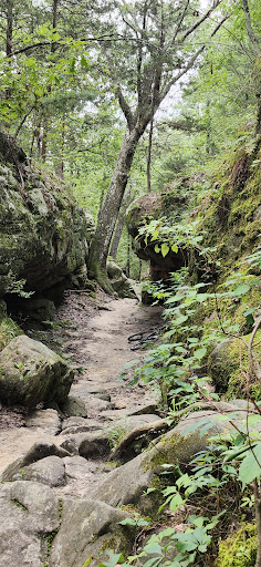 The 2nd half of the trail is a gradual to steep uphill. There are benches to stop along the way or even some very flat bounders to sit on. All is rewarded when you get to the overloook. There's not much to see except for more woods, but you'll be above the tree line and can...