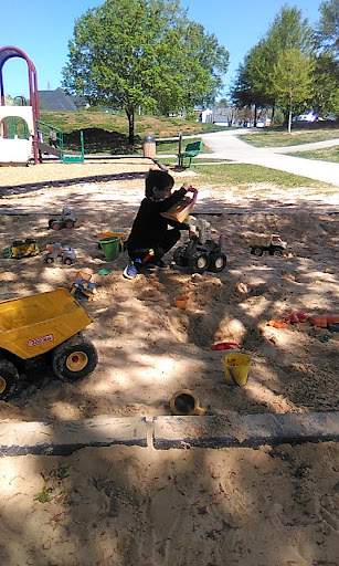 This is definitely one of my favorite parks in the area. That’s not only because it’s beautiful, but also because it’s just pretty unique when it comes to what it offers. There are soccer fields, a greenway, a beautiful lake, a playground, picnic tables, little wood cabin playhouses, and a giant sandbox filled with trucks for kids to play with. And as a bonus, the park also has really clean bathrooms, which is beyond helpful and makes long park days a lot less stressful. My kids and I could easily spend hours here. This is a...