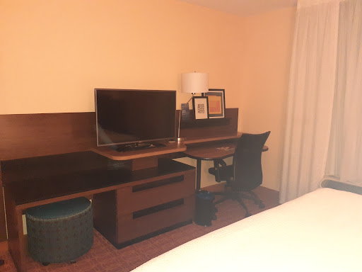 Not a huge deal, I thought they could easily give us a different room. So I went to the front desk to ask politely for a different room. She swiftly and unapologetically said "no, we're completely sold out tonight" and that there is no other option. There were definitely other options, not everyone had checked in for the night, and there were still rooms available at Marriotts website. Frustrated, we went back to the smelly room for the night, hoping the AC would help. Made it colder, but it was still smelly and damp. Tried to iron a shirt to be ready for work the next morning, but there was no iron in the closet (just the ironing board). Called the front desk and asked them to please bring an iron to my room. The same woman who wouldn't change our room said no, that we'd need to go down and get it from her.