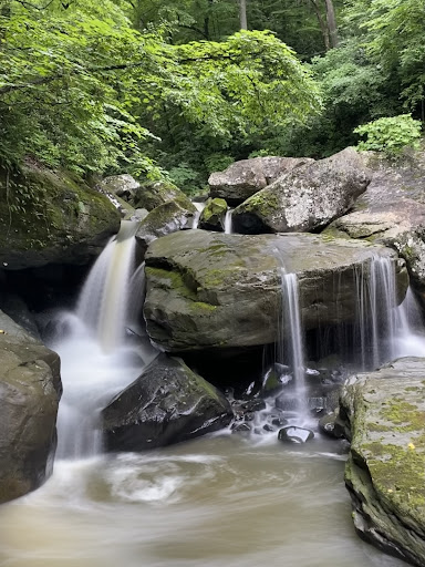 It appears there may be two pull offs in general vicinity of Wolf Creek Falls. There is no discernible trail..itâs sheer bushwhacking to get down to stream basin and even entering into side of the stream from hillside approach with growth that blocks your navigation it can be tricky. Stream seems to be intermittent with flow so falls can reflect that and may be disappointing if you build it up in your mind. Once in stream bed environment, you are completely surrounded by lush greens and rock hopping has its challenges with algae on rocks and many of rocks are smooth from being water beaten. I opted for walking in stream numerous times rather then risking the rock hop even with hiking sticks. The payoff is great sense of feeling isolated and serene despite Fayetteville road being 50-75 feet away. I used a drainage swath to descend. I wore a lot of forest in doing so but it beats fighting the overgrown rhododendrons and whatever lurks under themđł! Itâs a nice little falls and the reward is seeing and experiencing what most wonât because itâs a bit of work getting there. Worth it...