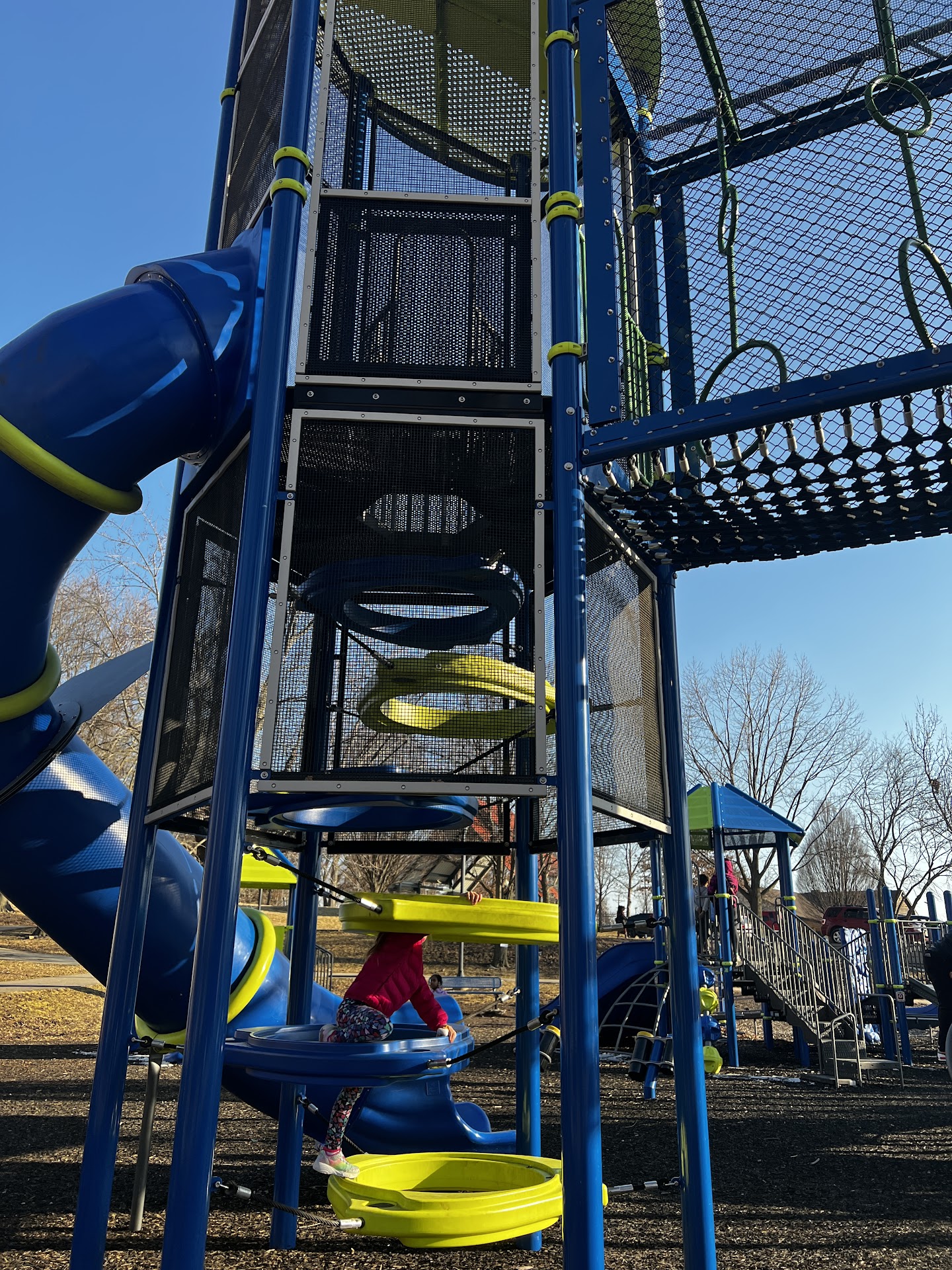 There were also many visitors to the large playground. I noticed slides, a jungle gym, swings, and many other items.
