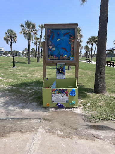 Lots of parking but does fill up on busy days. There is a playground here that is COVERED/shaded which is nice. Two boardwalks out to the sand. If you use parking near/right off the stop light, you don’t need a boardwalk - can go straight out to sand next to the Sand Bar. There are rinsing stations right by where the borrow a beach toy stand is (pictured) which is also right across from the playground. There are some picnic tables down the way towards the other boardwalk out and a big “grassy” area off that direction too. Nice beach area. Not usually quite as packed as Point Peter (the one down by the resort hotels opposite end of the oceanfront road) Would be nice to see more shade over the boardwalk and non-beach areas. Especially on days like today that was triple-digit heat index. I literately got blisters on my toes...